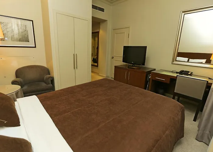 This Baku hotel is nestled in the Yasamal district, 2.9 km from the hard-to-miss historical sites like the 15th-century Palace of the Shirvanshahs. The hotel offers proximity to such natural sights as the Milli Park promenade (3.2 km) and Philarmonic Garden (3.1 km). The Royal Garden Baku is situated nearly a 15-minute drive from Azerbaijan State Academic Opera and Ballet Theater. The accommodation is located 30 km from Heydar Aliyev airport and within reach of Izmir parki bus stop.
